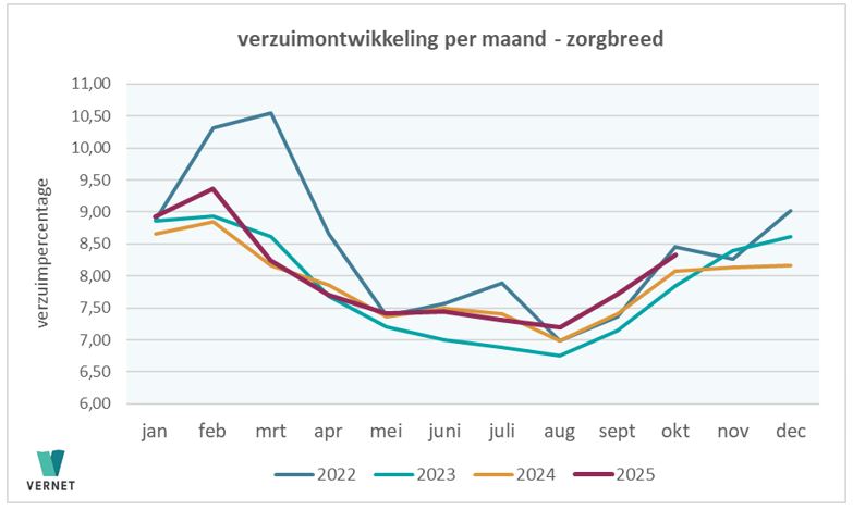 Gezien het verloop van de lijn van het maandverzuim verwachten we dat het verzuim in de maanden november en december in 2025 eveneens hoger zal zijn dan in 2024.